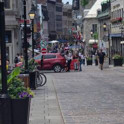 Heute ist Quebec dran. Es hat die Attribute schönste Stadt Kanadas zu sein, ... Ich fahre mit dem Motorrad hin und lasse aber meine Motorradstiefel und Motorradhose in der Unterkunft. Die Parkplatzsuche gestaltet sich etwas schwierig, letztendlich parke ich auf einem teuren öffentlichen Parkplatz.