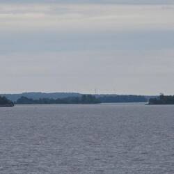 Ich habe heute den Luxus langsam reisen zu müssen. Es sind nur 200 km permanent am Sankt Lorenz Strom entlang. Eigentlich müsste man vom Sankt Lorenz Meer sprechen. Selbst bei dem klaren Wetter heute ist das andere Ufer kaum zu erkennen.