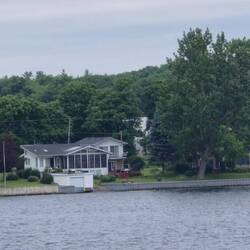 Montreal zu verlassen gestaltet sich schwieriger, wie anzukommen. Ich muss einen ca. 10 km langen Stau überstehen. Danach geht es aber bei angenehmen Temperaturen Richtung Thousand Islands. Ich fahre immer noch (seit etwa 1000 km) am Sank Lorenz Strom entlang. Im Bereich von Thousand Islands sind die Ufer große Buchten / Fjorde. Überall gibt es kleine oder größere Inseln aus Stein. Meistens sind sie bebaut. Dabei scheint es egal zu sein, wie klein die Insel ist. Ein Boot ist hier ein must have. Alle paar Kilometer ist ein Yachthafen.