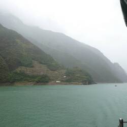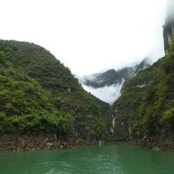 Die markante Rainbow Bridge markiert die Einfahrt in Schlucht Nr. 2, die Wu-Schlucht. Es regnet immer noch, wenn auch nicht mehr ganz so stark. Die Wolken hängen tief, so dass man die Spitze derRead more