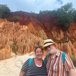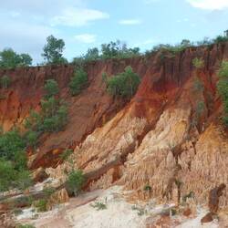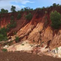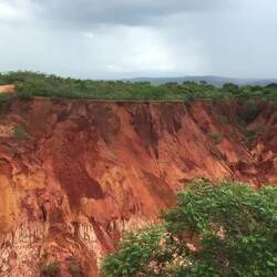 Vom nächsten, recht gut zu erreichenden, Aussichtspunkt aus können wir bereits einen ersten Blick auf unser Ziel, die roten Tsingys werfen, hinunter in die Schlucht, den Canyon (heißt auch imWeiterlesen