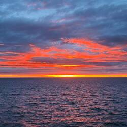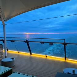Unser heutiger Seetag verspricht schon am frühen Morgen ein sonniger Tag zu werden. Wir können tatsächlich windgeschützt in der Sonne frühstücken.