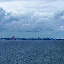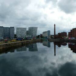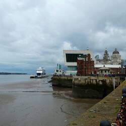 Beim Aufwachen befinden wir uns schon in der Anfahrt auf Liverpool auf dem Mersey River. Um hier den Fluss als so großes Schiff befahren zu können, braucht es noch einen Rest der Flut.
