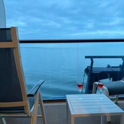 Unser 2. Seetag der Reise plätschert zwischen Frühstück, lecker Mittagessen im Gosch, Bücher lesen, Meer gucken, Abendessen und Cocktail trinken dahin.
