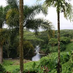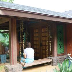 Ziemlich versteckt im Wald liegt unser nächstes Ziel, das "Kauai's Hindu Monastery - Saiva Siddhanta Church Headquarters". Unser Reiseführer empfiehlt einen Abstecher hierher. Wir Parken auf dem kleinen Parkplatz und am Eingang lesen wir die Regeln bezüglich der Kleidung. Wir werfen über unsere Beine aufgrund der kurzen Hosen ein Tuch über.