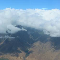 Schon von weitem begrüßt uns der Haleakala. We ragt durch die Wolken und den Himmel und stellt eine unübersehbare Landmarke dar.