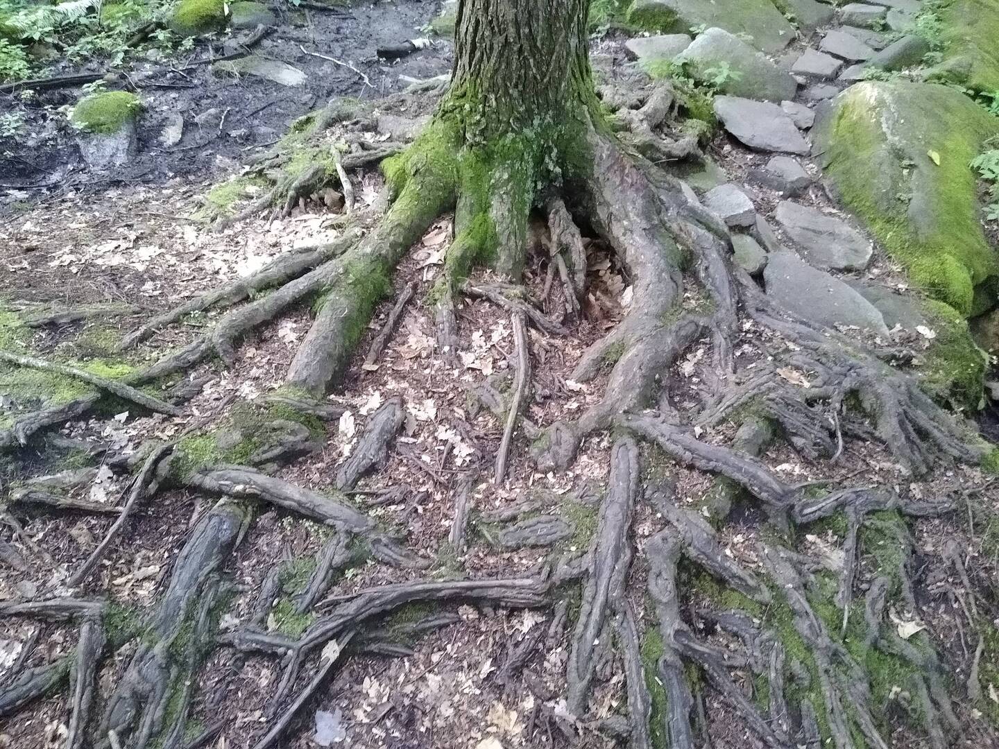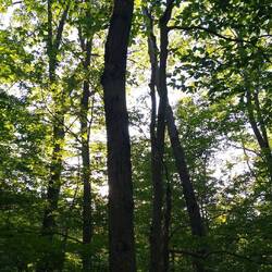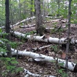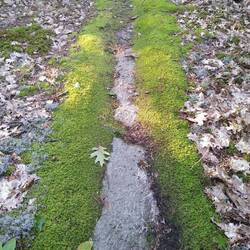After gathering up the pack, straws were drawn again, and the first hare set off with a new map headed for beer check number 2. Flanking this hare also, I managed to take over the tail setting duties. Zigging my way through town, I managed to find the park in the middle of town, the police station, another park, before circling a store and heading right back through the other side of the second park. The pack was coming down the street, but I was able to stand motionless and watch them looking around. A couple hounds got close, so I had to dart to a grassy spot and lay down while the FRBs found trail and yelled out, bringing them all back together. I then headed out towards the edge of town, looking for a foot trail in the woods that was on the map. Hitting a chain link fence, I turned into the forest, but after only a couple hundred feet, the undergrowth was too dense . . . plus I had run out of flour, so just started walking back towards the pack. Passing back over to Flexy again, who had the second bottle of flour, he took us the rest of the way into the second beer check out in the forest. The pack had grown by this point, as some wayward (LATE) hashers had finally caught up.