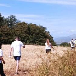 The weekend started with a farewell party on Thursday evening, for two local hashers departing for Bangkok. Friday evening we all met at Rose Revolution Square to board the bus for our ride out to the countryside. The venue was about an hour north of Tbilisi, at a lovely lakeside hotel. We had the whole place, so were free to wander about and get crazy. Trail started about 15 minutes from the hotel, and was an A to B affair through mostly farmers fields and forested paths. The hares asked for some assistance, so I gladly joined in to set trail, which we prelaid, and then ran along with the pack.