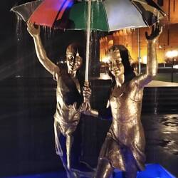 Next, I head straight to the men’s room to change into dry clothes. Finding the handicapped stall (pun intended), I strip down naked to give myself a chance to dry off before putting on dry clothes. I come out 10 minutes later I’m dressed and have stuffed everything back into my carry on, and out I come in bare feet, carrying my backpack and my still completely soaked shoes. Many eyes are upon me as I make my way to the first available seat to put on dry socks, before putting my feet back into my wet shoes. Miracle of miracles, it is 2215, I am dressed and ready for boarding. I grab a quick sandwich and soda, and get in line. And that, as they say, is that. I really stink, but I am in mostly dry clothes and I am on the plane.