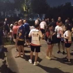 We all get scanned in, and circle up for some brief instructions. Then, without any further ado, we start running on the track. Certainly not your usual hash trail, but pretty thrilling for a one time event. We had at least 33 hashers on trail, and most all of us did the full 3.5 mile loop in extremely high humidity. I know I was totally drenched less than 15 minutes into the run, which would play a roll in the rest of this story. We all eventually completed the trail, and then get some water on our way back out to the parking lot. It is now 1945 (T -45 minutes to be back at the airport)