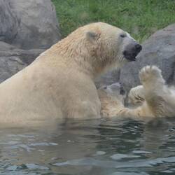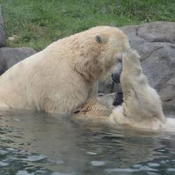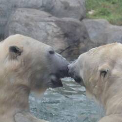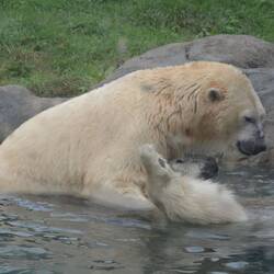 Hier noch einige Fotos von den Eisbären. Es ist einfach schön diese großen Tiere zu beobachten. Trotz ihrer Größe sind die Bewegungen sanft und behutsam.