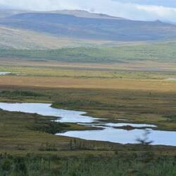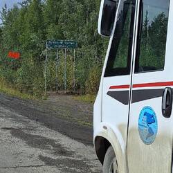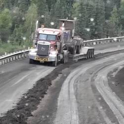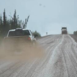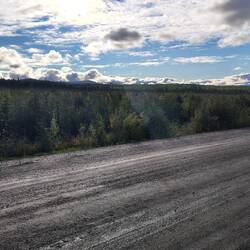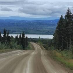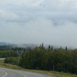 Wir kommen recht gut voran. In Fairbanks wird unsere Mademoiselle noch einmal voll getankt. Dann, kurz hinter Fairbanks, wird der Verkehr von der Feuerwehr angehalten. Hier wüteten noch bis vor kurzem heftige Waldbrände und wir befürchten das Schlimmste. Aber der Grund ist relativ harmlos. Die Feuerwehr zieht ihre schweren Baumaschinen ab, mit der sie grosse Schneisen geschlagen hatten. Bis die Transporter aus dem Matsch heraus sind dauert es zwar lange, aber dann geht es flott weiter.