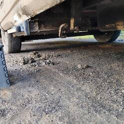 Als wir am Ziel ankommen, steigen wir logischerweise aus. Beim Wiederstart lässt sich die Treppe nicht mehr vollständig einfahren, da alles zugeschlammt ist. Ein permanenter Piep Ton begleitet uns bis zum Stellplatz und erst als Dieter den Dreck entfernt, geht sie mit leichten Schlägen wieder rein. Und das Piepen hört auf. Bilder dazu im nächsten Footprint.Baca lagi