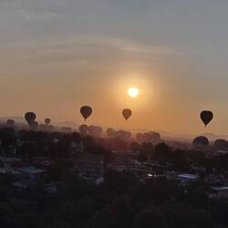 (HD) Der Tag beginnt für uns um kurz nach 4 Uhr. Gegen 5 Uhr holen uns zwei Kleinbusse ab und fahren uns zu einem Platz außerhalb der Stadt. Von dort startet unsere Ballonfahrt über dieMeer informatie