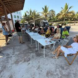 Nach der Stadtbesichtigung treffen wir uns um 16 Uhr zur Quizrunde. Uwe und Maya stellen Fragen zu den Erlebnissen der letzten 7 Monate. Wer zuerst die richtige Antwort weiss erhält ein kleinesMeer informatie