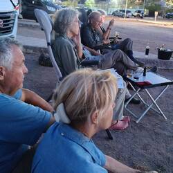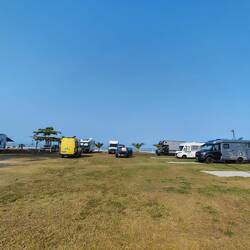 Hier wollen wir uns zu einer großen Tafel zusammensetzen, da Andreas zu seinem Geburtstag eingeladen hat. Er stiftet die Getränke und jedes Womo öffnetMeer informatie