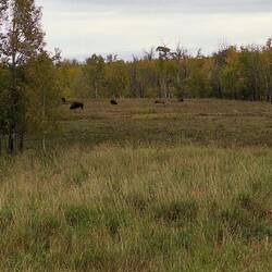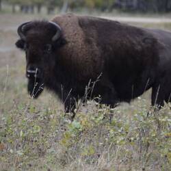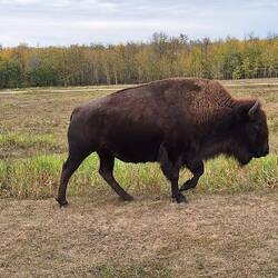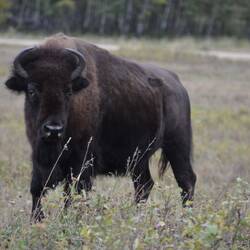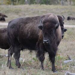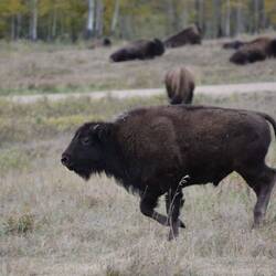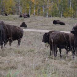 Nach dem Werkstattbesuch fahren wir rund 60 km zum "Elk Island Nationalpark " und übernachten dort. Auf dem Weg dorthin treffen wir auf eine große Herde Präriebisons und einen Waldbison.
