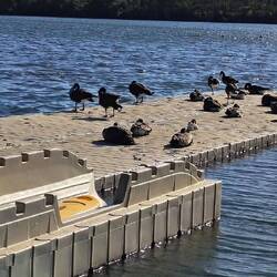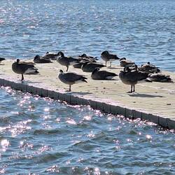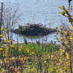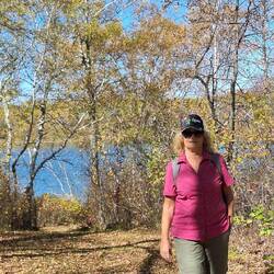 (V) Der Morgen ist schön sonnig und warm. Nach dem guten Frühstück beschließen wir von unserem Wald-Stellplatz zum nahe gelegenen sonnigen Bootsanleger-Parkplatz umzuziehen und von dort eine kleine Wanderung zu unternehmen. Es gibt zur Spitze der Halbinsel am Little Kenossa Lake einen Rundweg von ca. 3 bis 4 km, der sowohl im Sommer als Wanderweg als auch im Winter zum Skilanglauf genutzt wird. Jetzt sind wir hier alleine unter Wasservögeln und Eichhörnchen.