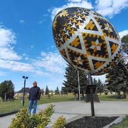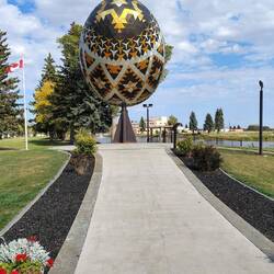 Anschließend besichtigen wir den Ort Vegreville, der 1906 von ukrainischen Auswanderern gegründet wurde und in dem auch heute noch mehrheitlich kanadisch-ukrainische Einwohner leben. Bekannt ist der Ort wegen seinem "Osterei".