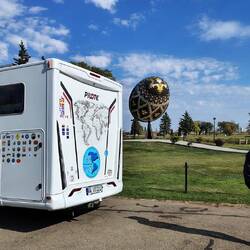 Zuerst besuchen wir das "Saskatchewan Science Centre", das "Wissenschaftszentrum" das von einer gemeinnützigen Organisation betrieben wird. Anschließend wandern wir durch einen herbstlich geprägten Park der uns die Schönheit dieser Jahreszeit vor Augen führt.
