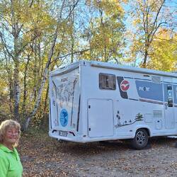 Letztlich bleiben wir vier Tage hier. Der Sonntag lädt zum Faulenzen ein. Starkregen mit 20 L/m2 lassen den Platz zu einem kleinen See werden. Montag kümmern wir uns um den Riss in der Scheibe unserer Mademoiselle. Die Besitzerin des Campingplatzes empfahl einen kleinen Betrieb 15 km entfernt. Der 75 jährige Seniorchef schaute sich das an und versprach am Nachmittag zu helfen. Er zeigte uns jede Menge Fotos von seinem Haus am Waldrand und Tieraufnahmen die er von seiner Terrasse aus geschossen hat. Wir kommen um 14 Uhr zurück und er versiegelt den Riss. Kann natürlich für nichts garantieren. Klar. Wir lassen im Ort noch unsere deutsche Propangasflasche auffüllen und stocken den Lebensmittelvorrat auf. Die Temperaturen liegen mittlerweile nachts bei 0 Grad. Da reicht unser kleiner Elektroofen nicht mehr aus. Gestern war Waschtag und heute wollen wir weiter. Schreck am Morgen. Ein zweiter Riss hat sich wohl aufgrund der Temperaturschwankungen gebildet. Nicht sehr groß aber direkt am Rand. Also noch mal zum Autoglaser. Der hilft uns ein zweites Mal. Sein Sohn und ein Kunde kommen hinzu. Alle wollen unsere Story hören und berichten, wie fast alle Kanadier die wir treffen, dass sie schon mal in Deutschland waren. Sie sind ehrlich stolz darauf, uns ihr Land zu zeigen. Mit Verspätung starten wir dann gegen 11.30 Uhr.