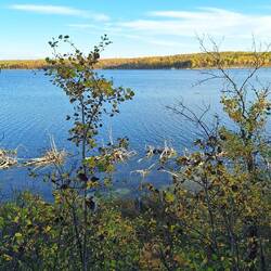 (V) Wir folgen weiter dem Trans Canada Highway gen Osten. Ganz allmählich verändert sich die Landschaft. Es wird hügeliger, viele Seen und Tümpel links und rechts der Straße, Mischwald mit buntem Herbstlaub säumt die Straße.