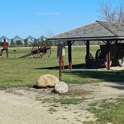 (V) Unseren Plan noch in Moose Jaw einen Stopp einzulegen, haben wir gecancelt, denn die dortige Attraktion, die Besichtigung des Bergwerk Tunnels mit Führung muss im voraus gebucht werden und bei 270 km Anfahrt können wir nicht voraussagen wann wir ankommen. Die Führung wird als Theaterstück an verschiedenen Punkten des Tunnels gezeigt, doch so gut ist unser Englisch dann nicht um dem Inhalt folgen zu können.