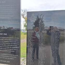 Erschreckend finden wir, wie viele Menschen in dem nur 6 Jahre dauernden Luftkrieg ihr Leben lassen mussten. Wenn man die Tafeln im Außengelände genauer liest erkennt man dass fast nur junge Männer zwischen 20 und 25 Jahren darunter sind. Über 18.000 Menschen die für die kanadische Luftwaffe dienten verloren ihr Leben. Alle 18.000 sind namentlich aufgeführt. Die Tafeln und die Sitzbänke davor erinnern daran dass diese Menschen gestorben sind damit wir heute Frieden haben.