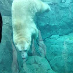 Sieben Eisbären leben dort. Wir erinnern uns an Knut, das Eisbärbaby im Berliner Zoo, und das Aufsehen dass er erregt hatte.