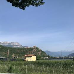 The weather has been blistering hot. Highs of 33 degrees for the past few days so this morning - cycling day 3 - we left at the crack of 8 and knocked out a quick 40km before coffee. As our Chinese family would say, “ we poured on oil”. It was wise because by the time we arrived in Trento 27 km later the heat and humidity were high again. I’m not too sure what Helen wants to see here today but we’re currently sitting out the afternoon rain. Trento is one of the wealthiest cities in Italy , known as the “silicone valley” of Italy. We have come out of the steepest parts of the pass and the landscape has opened up into wider valleys. Today we were cycling through fruit groves and past many asparagus fields. Also, lots and lots of vineyards. Today is Sunday so at 10 the church bells in the villages started peeling, calling the faithful. The pervading scent in the air is floral - except by the farms of course - with lots of wisteria, lilacs, early jasmine blooming and that yellow flower that hangs in bunches like grapes (Karen, you’ve told me the name but I can’t recall). Unfortunately the blossoms have been accompanied by ++ +pollen and Mike’s using his Ventolin so he can keep breathing. We may have to do a run to the pharmacy for eye drops if this keeps up.