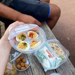 Our first day of bikepacking began with us getting used to the bikes and saying goodbye to Tom. We had practiced packing our gear onto the bikes the night before, but started making small changes as we went along. I was glad that we didn't pack too much, and Vikum's bike had bags that could fit nearly everything, so my ride was really light hehe. It was a warm day, and we were happy that most of our route was shaded by trees.