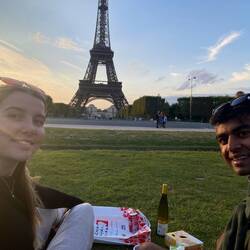 We enjoyed our assortment of foods, our cork-tainted wine, and the music, as well as the atmosphere of excitement as everyone waited in anticipation for the tower to light up and sparkle on the hour. There was an audible gasp as it shimmered, and despite expecting it, the sparkling tower surprised me too. It was a nice evening, and despite having a wine-blanket by this point, I got a little chilly, so we wrapped up as it got dark. We walked right under the tower, past the saxophonist playing La Vie en Rose, and found a Metro line to take us back to the Airbnb, ending a very full touristy but fun day seeing Paris.Read more