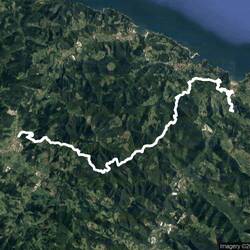 Heute würde beinhart, das versprach schon allein das Höhenprofil. Gleich hinter der Unterkunft erst einmal zweihundert Meter Abstieg nach „Deba“, bis auf Meereshöhe. Danach kurz den Fluss „Deba ibaia“ überquert um dann, verteilt auf sechseinhalb Kilometer, auf fast sechshundert Meter Höhe aufzusteigen.