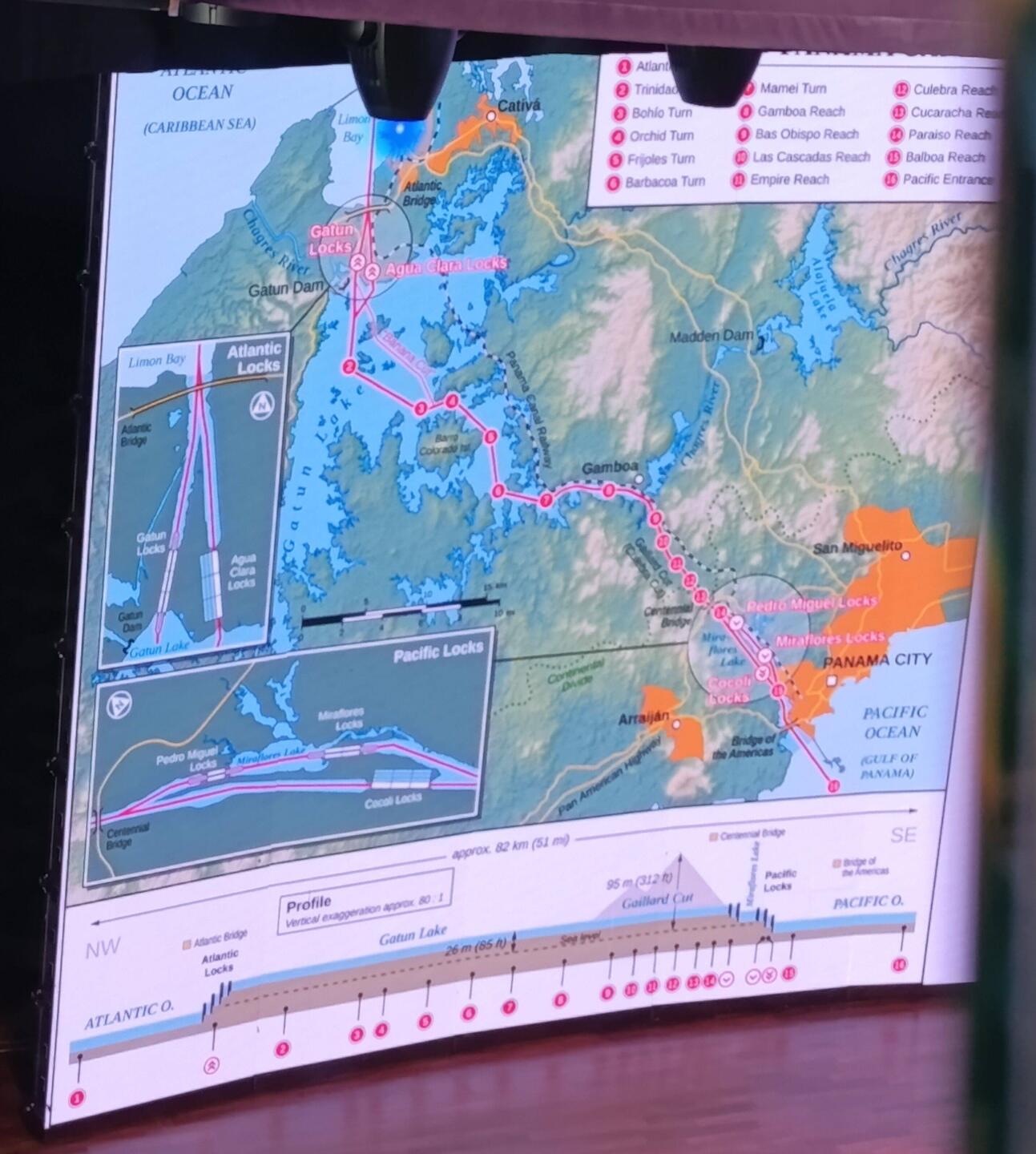 dann eine Doppelschleuse (Miraflores) senken die Schiffe zum Pazifik ab