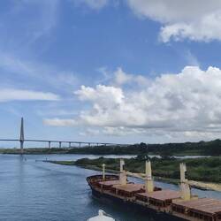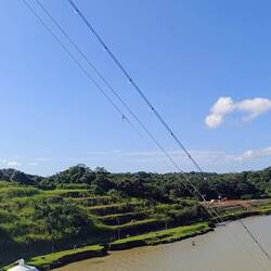 Wir fahren durch die große Brücke und werden gleich die Gatunschleusen erreichen.