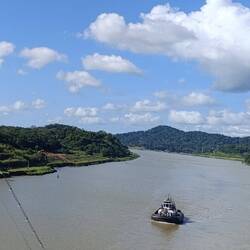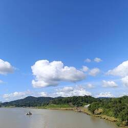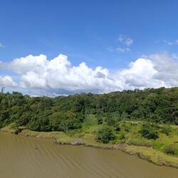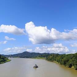 Wir sind jetzt zwischen den beiden Schleusen und schippern auf dem Gatunsee und auf den Resten vom Rio Chagres.
