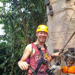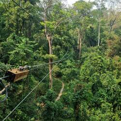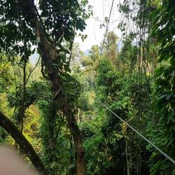 Der Weg runter geht nicht gerade einfacher aber mit weniger Stufen per ZiplineBaca lagi