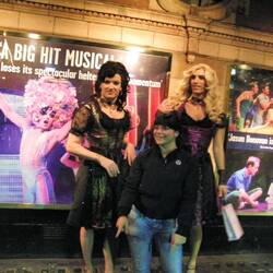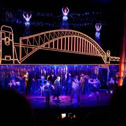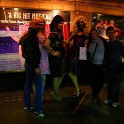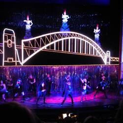 Aber zum Musical. Ich erwartete, dass es gut werden würde, und ich wurde nicht enttäuscht. Jemand, der Priscilla kennt, wird sich darin ebenso wieder zurechtfinden, wie es ein Nichtkenner wird. Die meisten Szenen sind deutlich wieder zuerkennen und viele kleine Gimmicks wurden eingebaut. So überfährt die Riesenausgabe eines Barbiecampers Koalabären und Känguruhs und allerlei weiteres Getier, so finden sich verschiedene Arten von Touristen in der Wüste wieder und statt der Fucking Abbas durfte im Bus kein Wort über bloody Kylie verloren werden. Sicher eine Anspielung auf die Liaison vom Herrn Donovan vor vielen vielen Jahren und sicher auch eine der heutigen Zeit gewidmet…
