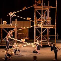 Tolle Akrobatik mit auf und unter Bambus -Stäben, -Körben, -Gestängen.