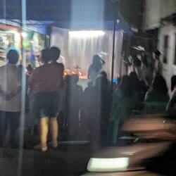 Oder die improvisierte Messe nicht wirklich in einer Kirche, mehr unter freiem Himmel, aber offensichtlich katholisch.