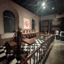 Aber hier sah man das einzige mal wie seine Zelle aussah und wiewohl das Haus drumherum aus gesehen haben könnte. Denn hier wurde etwas wieder aufgebaut. Ansonsten war das meiste im fort Santiago ja doch eher Ruine, außer die außenmauern, Natürlich