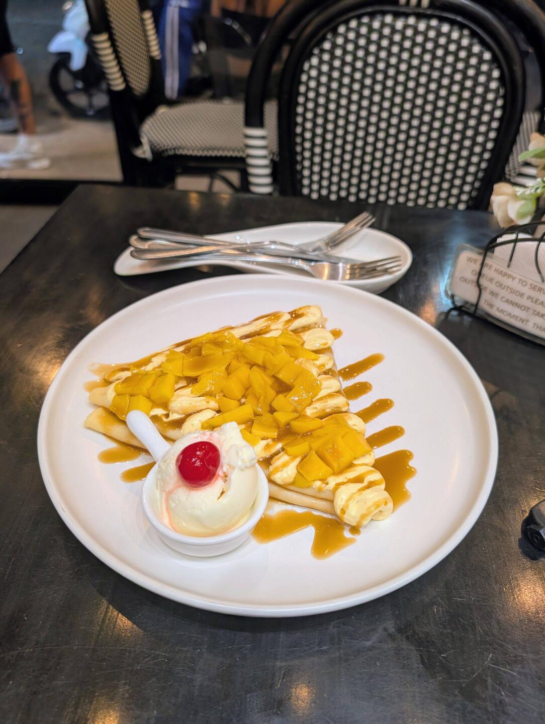 Nun gut coron town ist nicht sonderlich groß. Und sonderlich viel crepe wird auf den Philippinen sowieso nicht verkauft. Aber die waren schon wirklich gut. Also mein crêpes hatte Mango Cheesecake Karamell mit Vanilleeis und das war schon sehr geil.