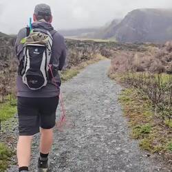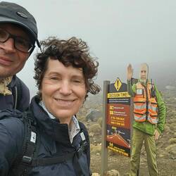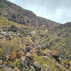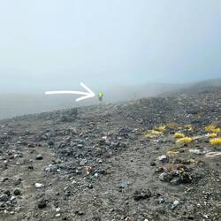 Wir wanderten bis zum Kraterplateau. Zwischendurch kam dann sogar die Sonne raus und wir hofften, das der Wind reichte, um auch die anderen Wolken zu verteiben. Dann zog es sich leider wieder zu.Læs mere