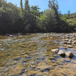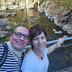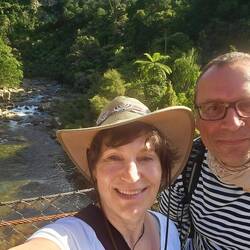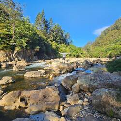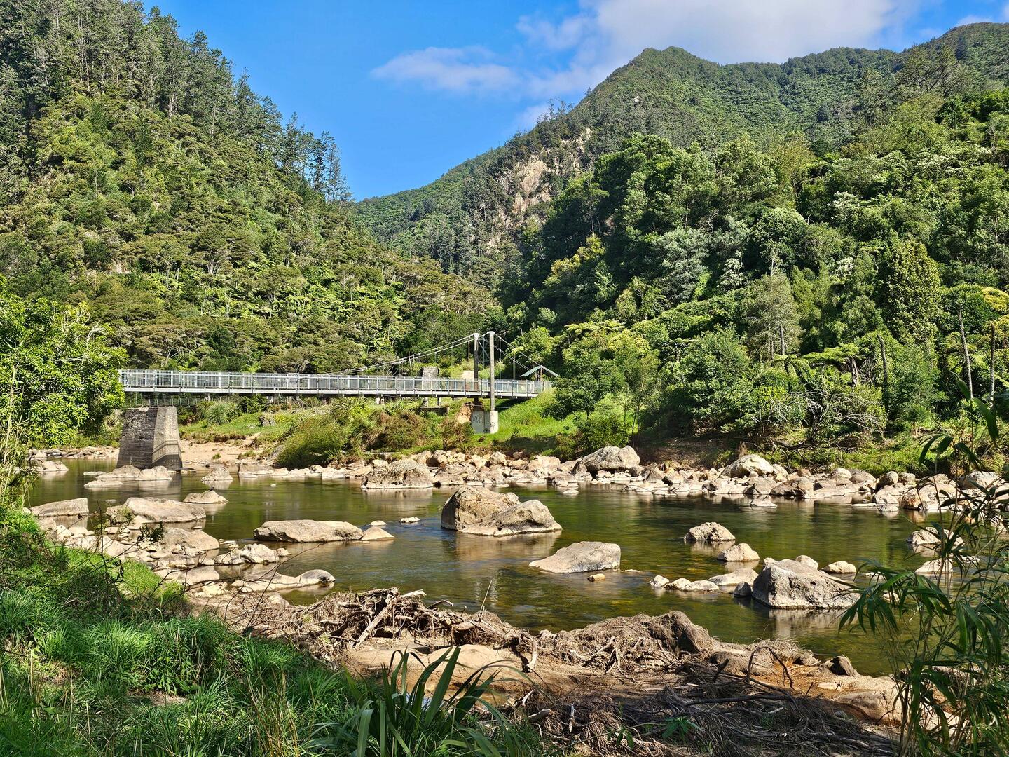 Auf dem Weg der 309 gibt es viele Geocaches, die uns u.a. an schöne Plätze wie diesen Park am Whangamaroro River führten. Natürlich waren wir nicht dort, ohne das Carsten im kalten Wasser badete!