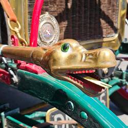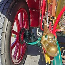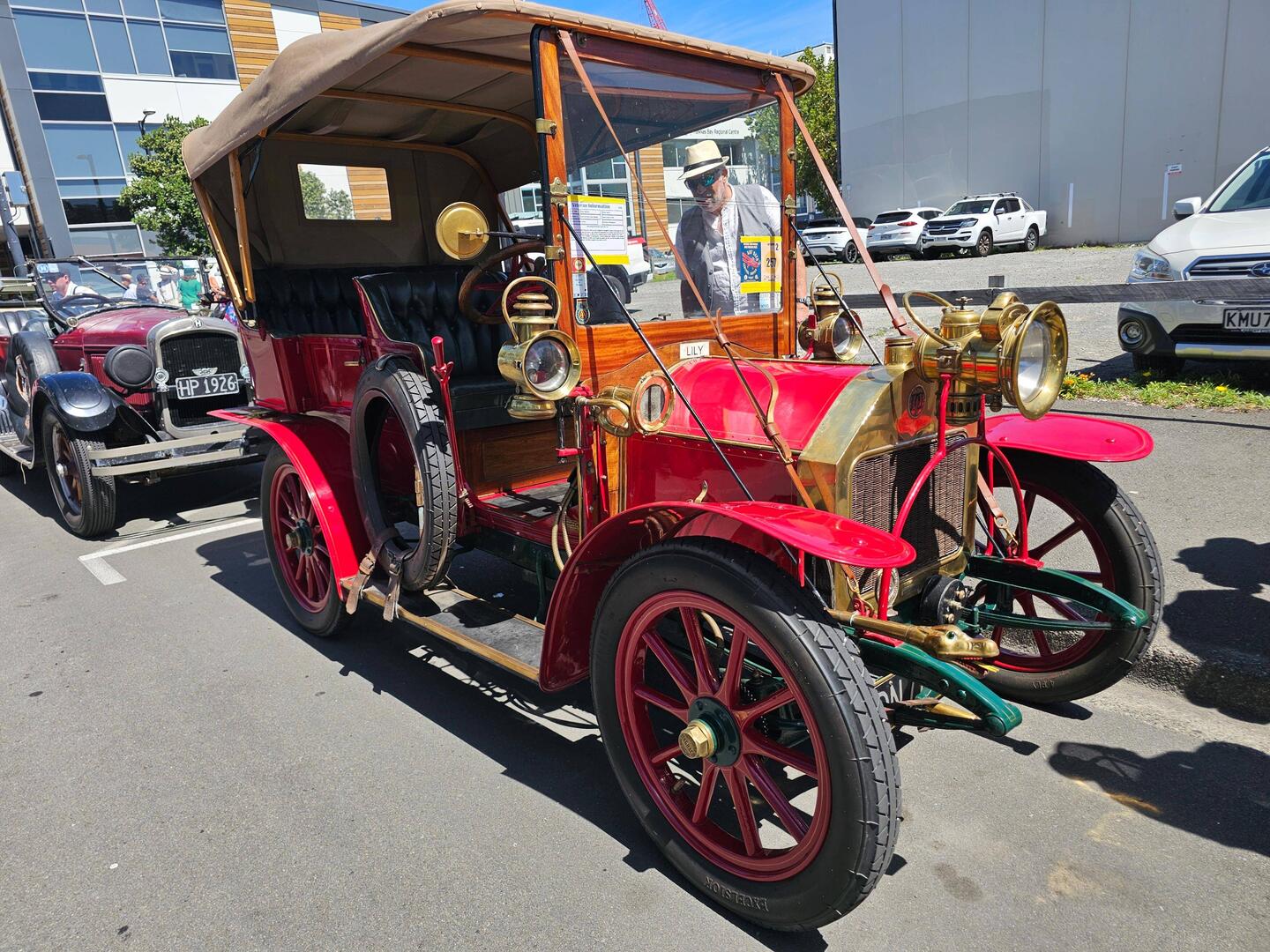 Nach der Parade wurden alle Autos noch zur Schau gestellt. Dieses hier von der Marke Darracq ist von 1906 und kommt aus Paris. Der Besitzer schrieb dazu folgendes im Aushang: