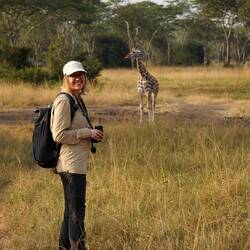 Der nächste Tag startet mit einem weiteren Game Drive noch vor Sonnenaufgang. Dann sind die Tiere besonders aktiv und Sam führt uns direkt zu zwei jagenden Löwinnen. Das ist ziemlich cool, da sich die Raubkatzen für den Rest des Tages im Schatten entspannen und durch das hohe Gras nur schwer zu sehen sind. Am besten gefallen uns aber doch die Giraffen, die elegant durch die Savanne stolzieren. Wir löchern Sam weiter mit Fragen und bedanken uns dann für die tolle Erfahrung.