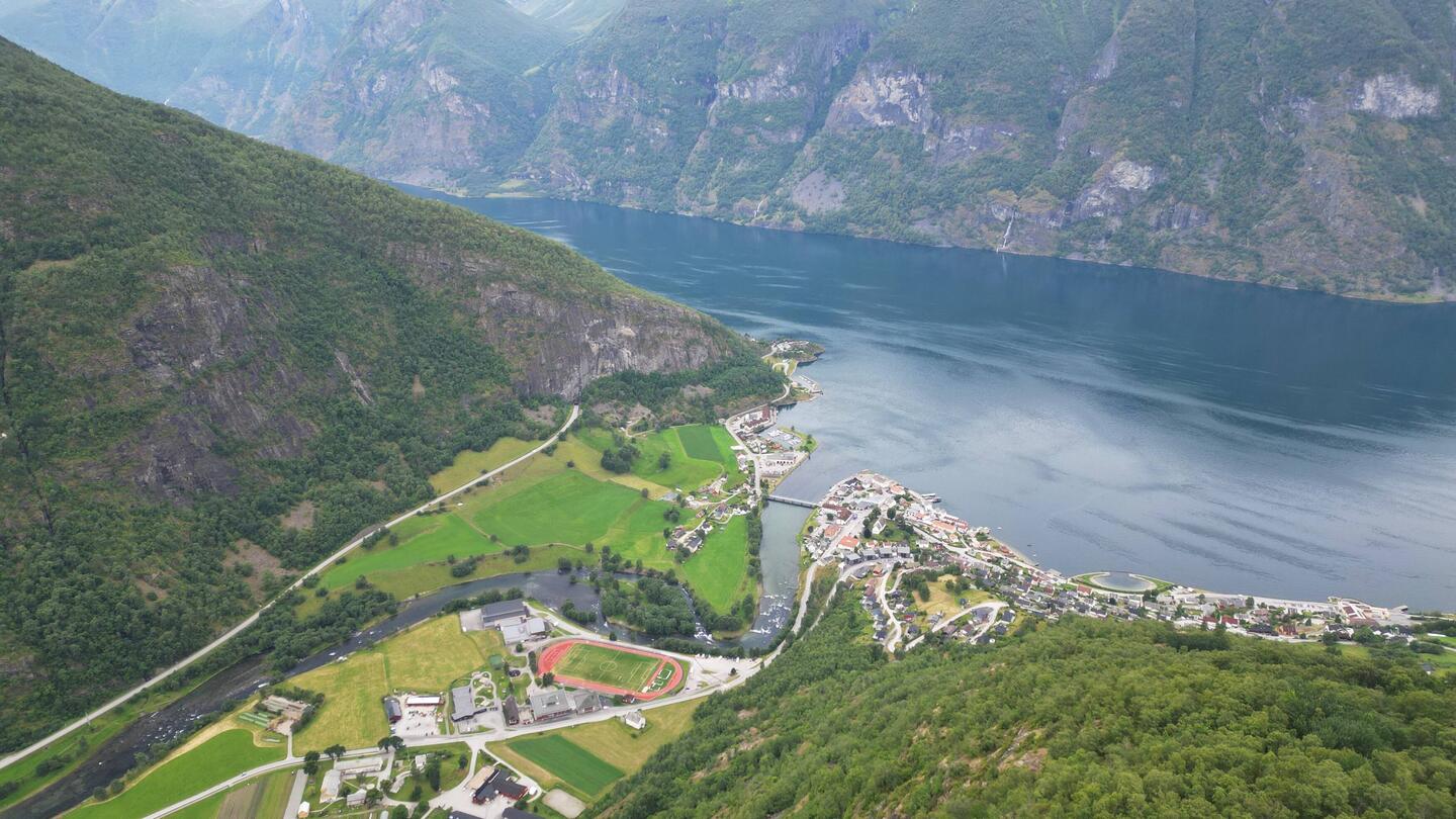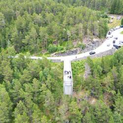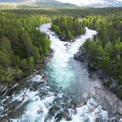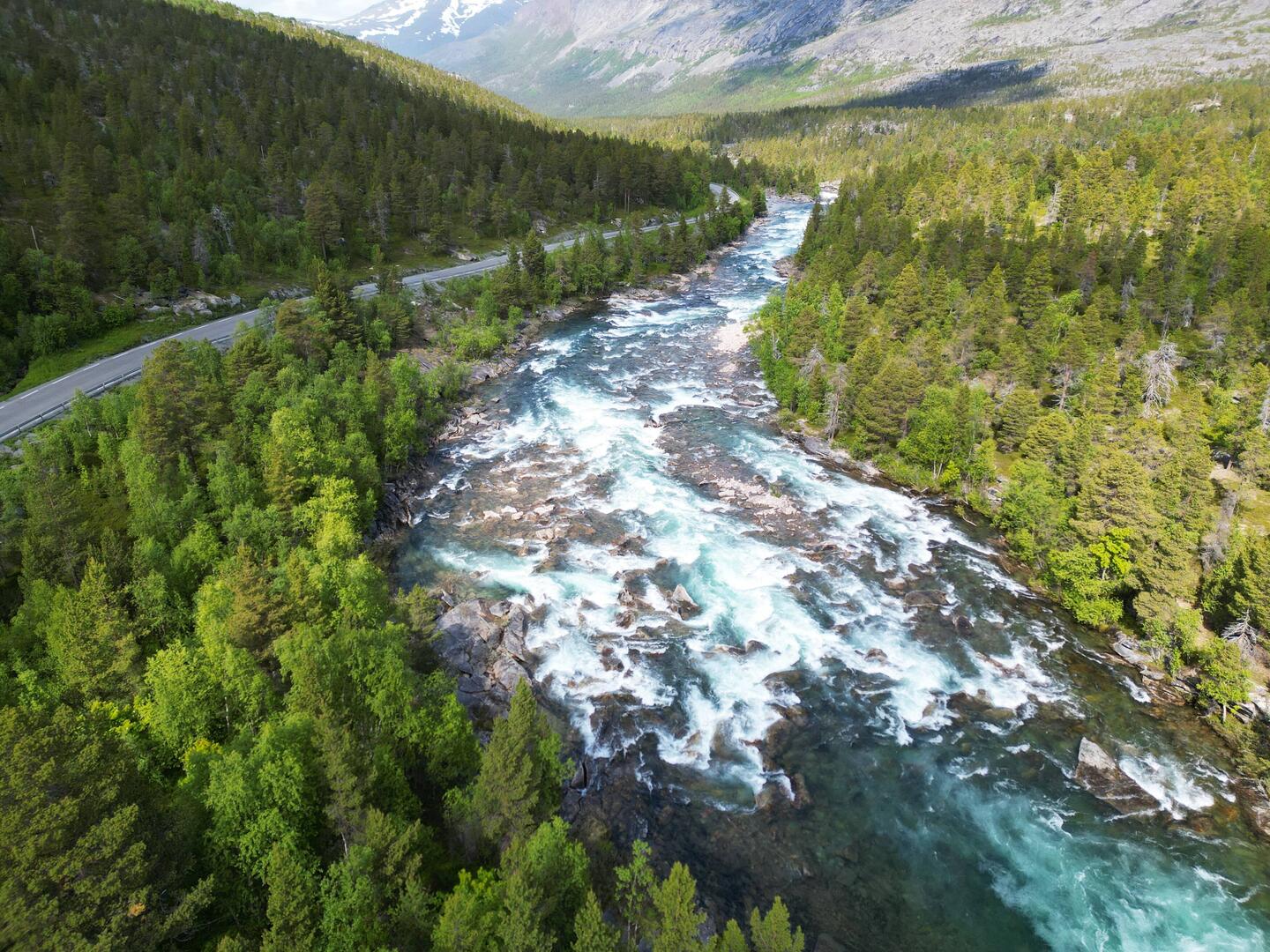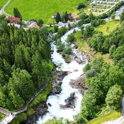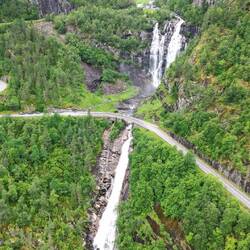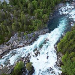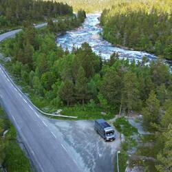 Der 3 Halt war am Skjervefossen Wasserfall. Zu Fuß etwas schwer zu erkennen, wie groß das Teil ist, aber mit Drohne ist es deutlich besser zu sehen.
