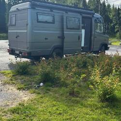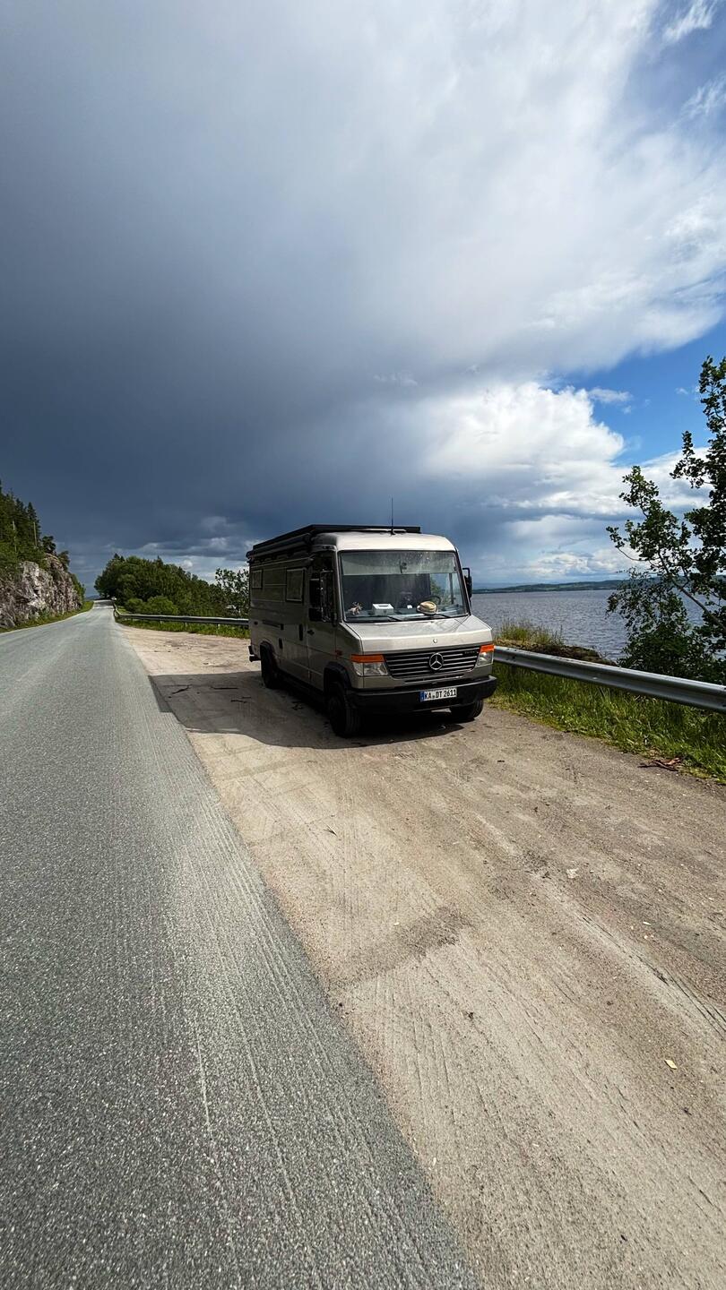 Unser Stellplatz für die Nacht. Liegt zwar direkt neben der E6 aber Nachts ist da nix los.