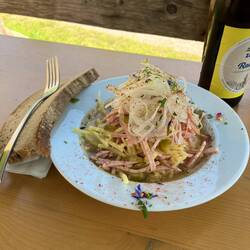 Vorgestern endete unsere Gratwanderung an der Hochgrat-Bergstation, heute starten wir dort oben. Für den Aufstieg scheint die schöne Sonne schon am Morgen zu stark. ☀️