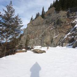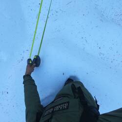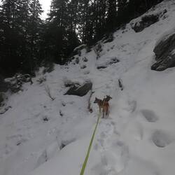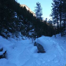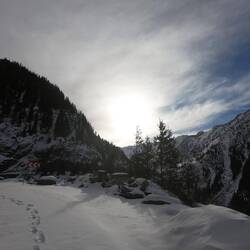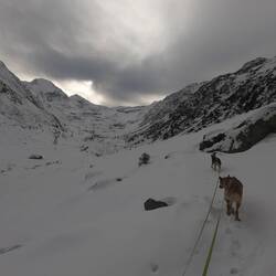 Die heutige Wanderung soll uns von 1200m zum Capra-Gletschersee auf 2100m führen. Doch schon auf den ersten Meter zeigt sich, dass der Aufstieg um einiges erschwert wird. Es liegt meterhoch SchneeLæs mere